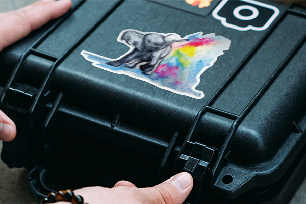 Four years ago. I was a year or two into being a full-time artist. The sticker I made was a baby elephant splashing in rainbow colors.