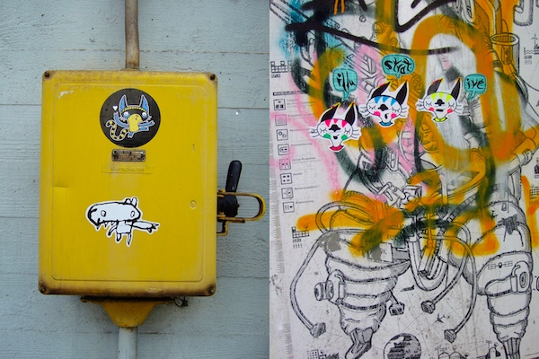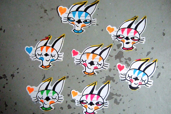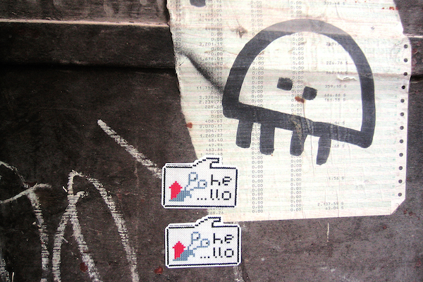 When artist Syl Hillier visited Japan in the late ‘90s, she used stickers to keep from getting lost, putting them up in places that she would look to as guideposts when she was wandering around the city. Back at her job in an ad agency in Europe, she printed thousands of stickers on the office printer, breaking the machine and sending Syl looking for other ways to make stickers.
