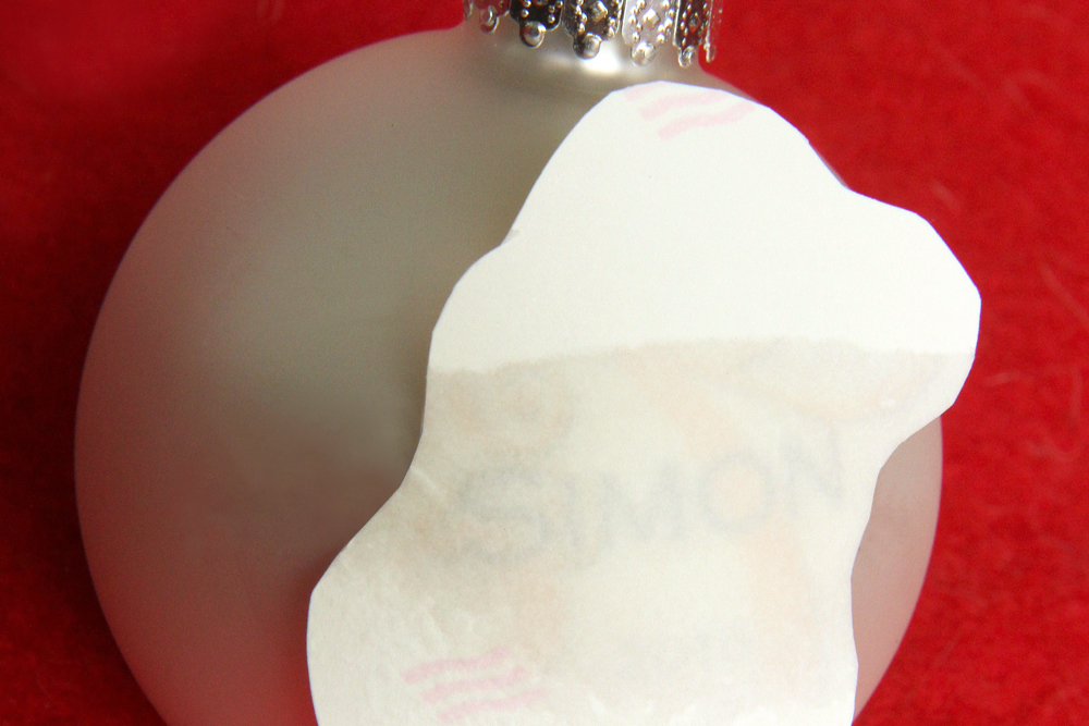 Step 5. Hold the temporary tattoo in place for several seconds. Then gently pull up the edge of the temporary tattoo. Gently peel off all the backing. The temporary tattoo should be left in place on the ornament bulb.