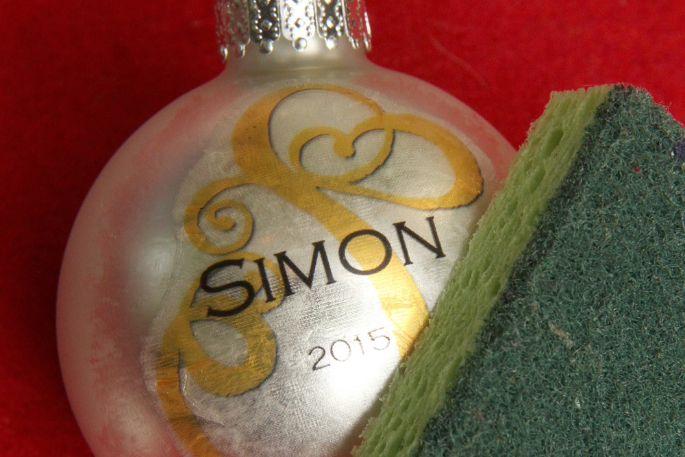 Step 6. If any edges of the temporary tattoo have lifted up, gently dab them back into place using the edge of the sponge. Set aside to dry and repeat the process with the next ornaments.