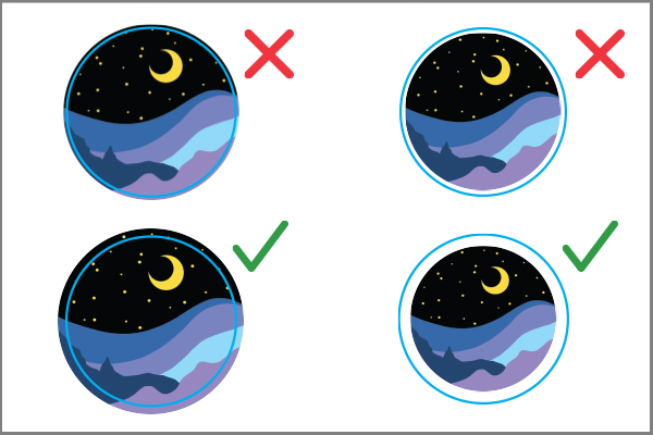 - Your bleed and/or padding are at bled or padded by at least 5pts (0.07”)