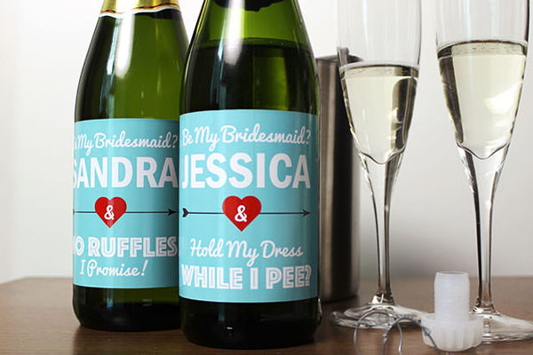 How you do it: Buy a bottle of your bridemaid's favourite vino. Carefully soak off the label, dry the bottle, then apply a custom wine label from StickerYou. You can design your own label with their name, customize any of StickerYou's Ā templates, orĀ evenĀ upload a photo of the two of you and add it to the design. Wrap the bottle as a gift, or break it out next time your bridesmaid is over. Then open and toast to her new status.