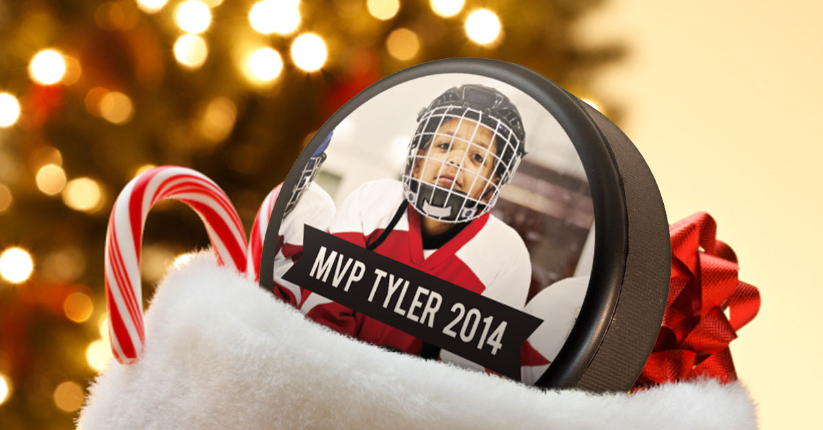 Got a superstar on the home-team? Hockey pucks make a great stocking-stuffer or holiday gift for your young one. Add a photo sticker of them in their hockey gear and the date to the top of the puck. It will be a keepsake they will treasure for years. Also great for older sports fans or teammates!