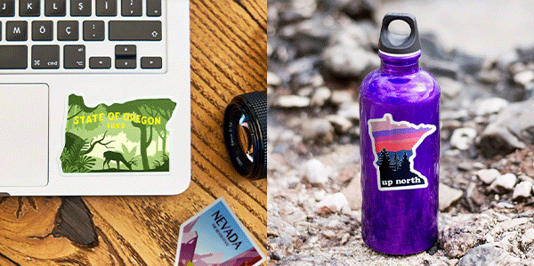 Full of wanderlust, vacations, and cross-country travels? Create a stickerbomb collage of all the places you visit - and adorn your luggage, Hydro Flask, laptop, or whatever your heart desires. You can even upload travel memories and photos to print on the inside portion of your sticker - the world (or America) is truly in your hands.
