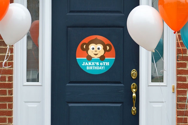 Help other parents find the right house on the street by adding a door sticker to your front door. These are removable, more environmentally friendly than balloons and can be used in any weather. They also help to set the theme for your party. Those other parents will be impressed.