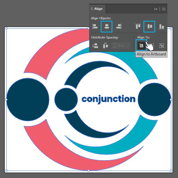 - Navigate to the “Align” panel and click both Horizontal Align Center and Vertical Align Center.